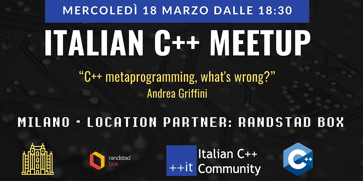 🎙️ Per l'occasione, Andrea Griffini terrà la sessione "C++ metaprogramming, what's wrong?"
