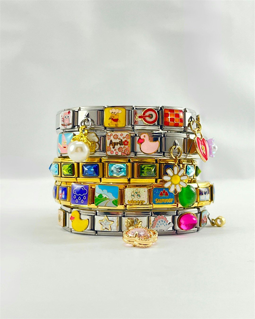 Choose from over 500 varieties of vintage-inspired Italian charms to create your perfect bracelet, watch, keychain/bag charm or ring.