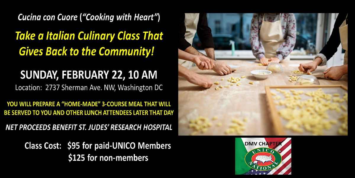 Join UNICO DMV on Sunday, February 22 at 10:00 am, for a hands-on culinary lesson that celebrates the flavors, traditions, and joy of Italian cooking, while also benefiting charity.