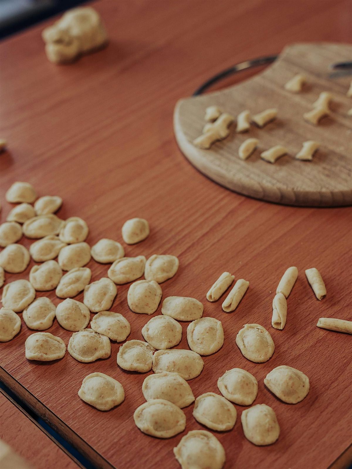 We will make two shapes of pasta: orecchiette and maccheroni. All the ingredients and tools are provided, just take a container with you to bring your handmade pasta at home, ready for dinner!