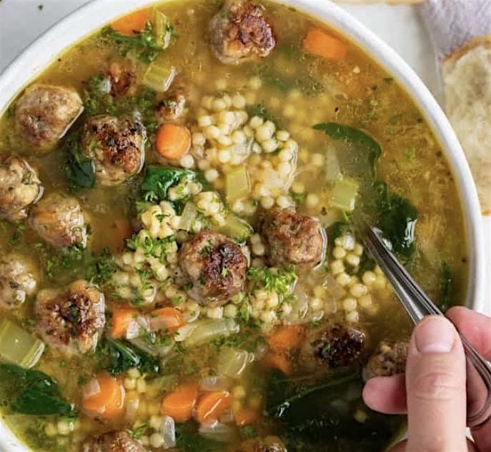 Italian Wedding Soup with Pepperoni and 3 Cheese stuffed bread