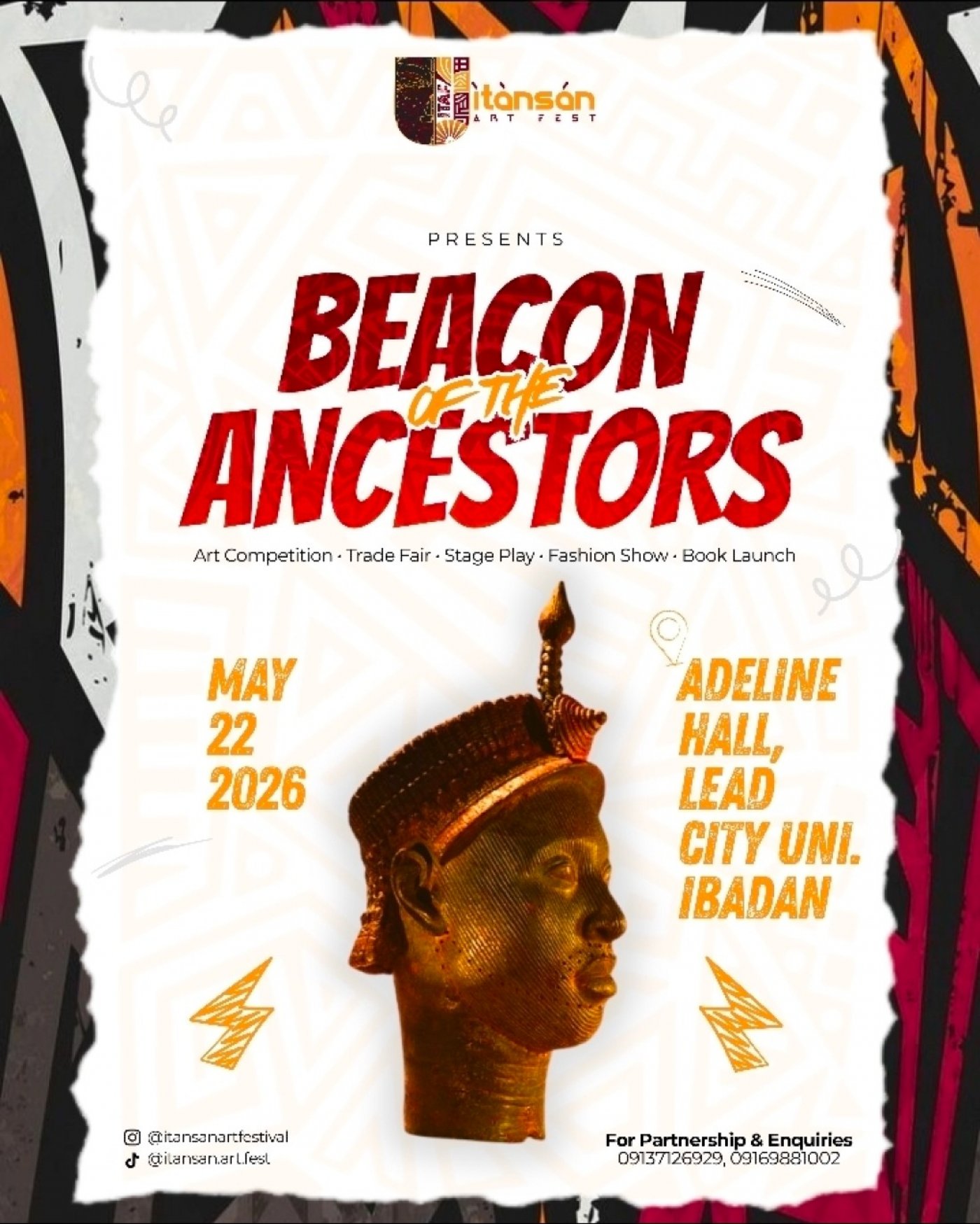 Step into a vibrant celebration of Yoruba heritage at the maiden edition of Itansan ArtFest, happening on May 22, 2026, at Adeline Hall, Lead City University, Ibadan.