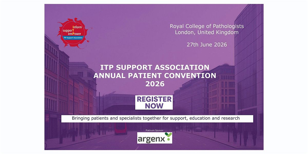 The ITP Support Association 2026 UK ITP Convention will take place on Saturday 27th June 2026 at the Royal college of Pathologists, 6 Alie St, London E1 8QT.