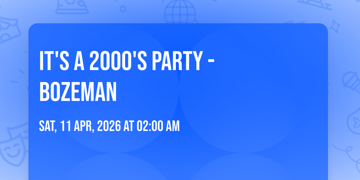 π Location: 45.6847, -111.046π Step into a world of wonder at It's A 2000's Party - Bozeman, where extraordinary moments await! ποΈ Located at The Elm in dynamic Bozeman, MT, this event will become the talk of the town. π Join us on April 11th, 2026 at 02:00 AM for a celebration that defies the ordinary. β¨ This curated experience brings together the best of entertainment, culture, and community spirit. Every detail has been thoughtfully planned to ensure an unforgettable experience for all our guests. π― Take advantage of this opportunity to be part of something special. π Early registration is recommended as space is limited!