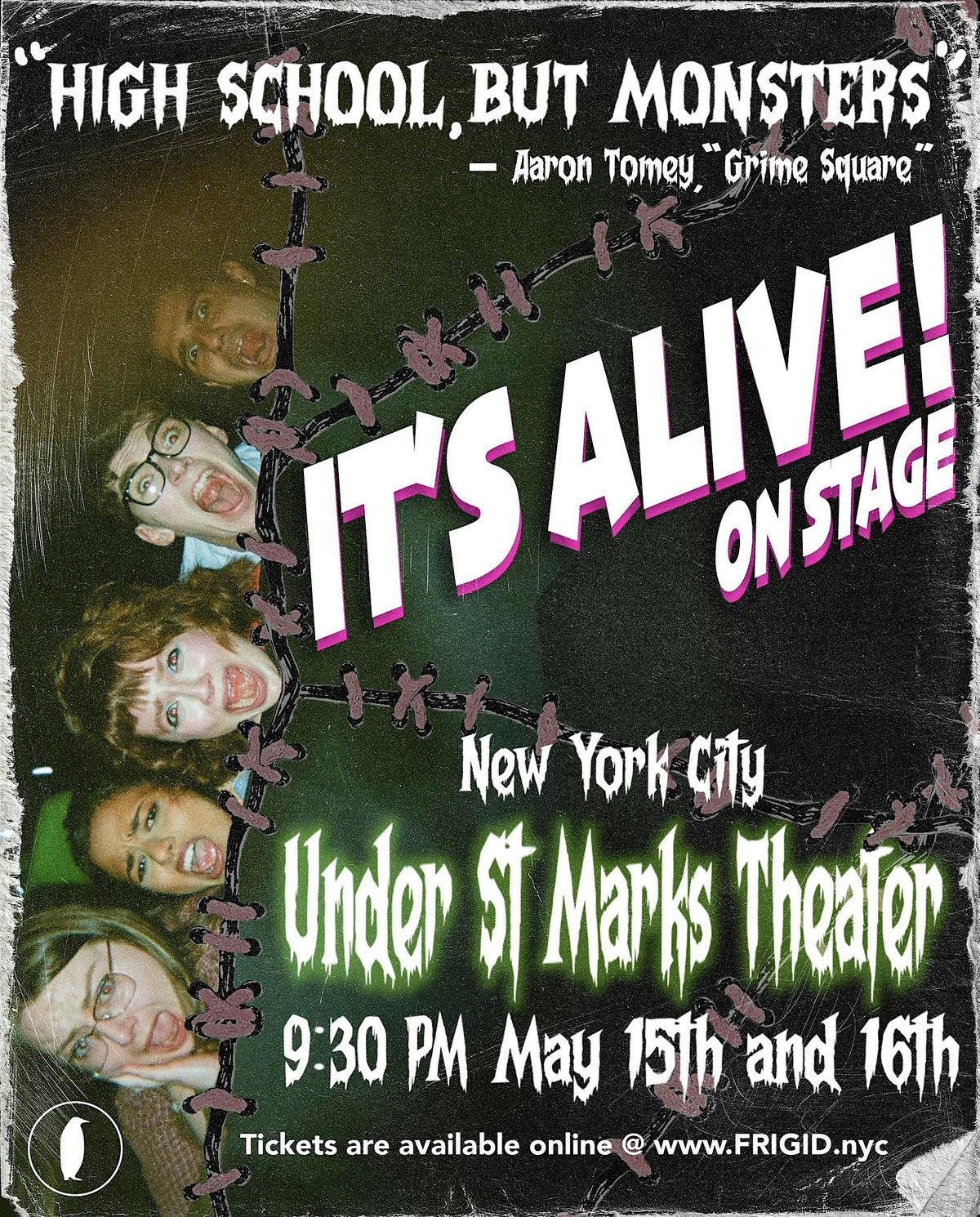 When five teens are sentenced to a fate worse than death (AKA Friday night detention), they discover that the adults working at their school are not who they appear to be. With the "Friday the 13th Halloween Blood Moon" fast approaching, the students must fight to survive the night while their bloodthirsty principal plots their doom. "It's Alive: ON STAGE!" is a hysterical and raunchy original comedy musical channeling the spirit of your favorite John Hughes films set to a rocking score.