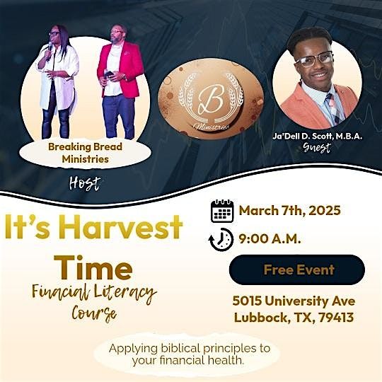 Welcome to the annual harvest event at 5015 University Ave. Get ready for a day filled with financial literacy backed by biblical principals.