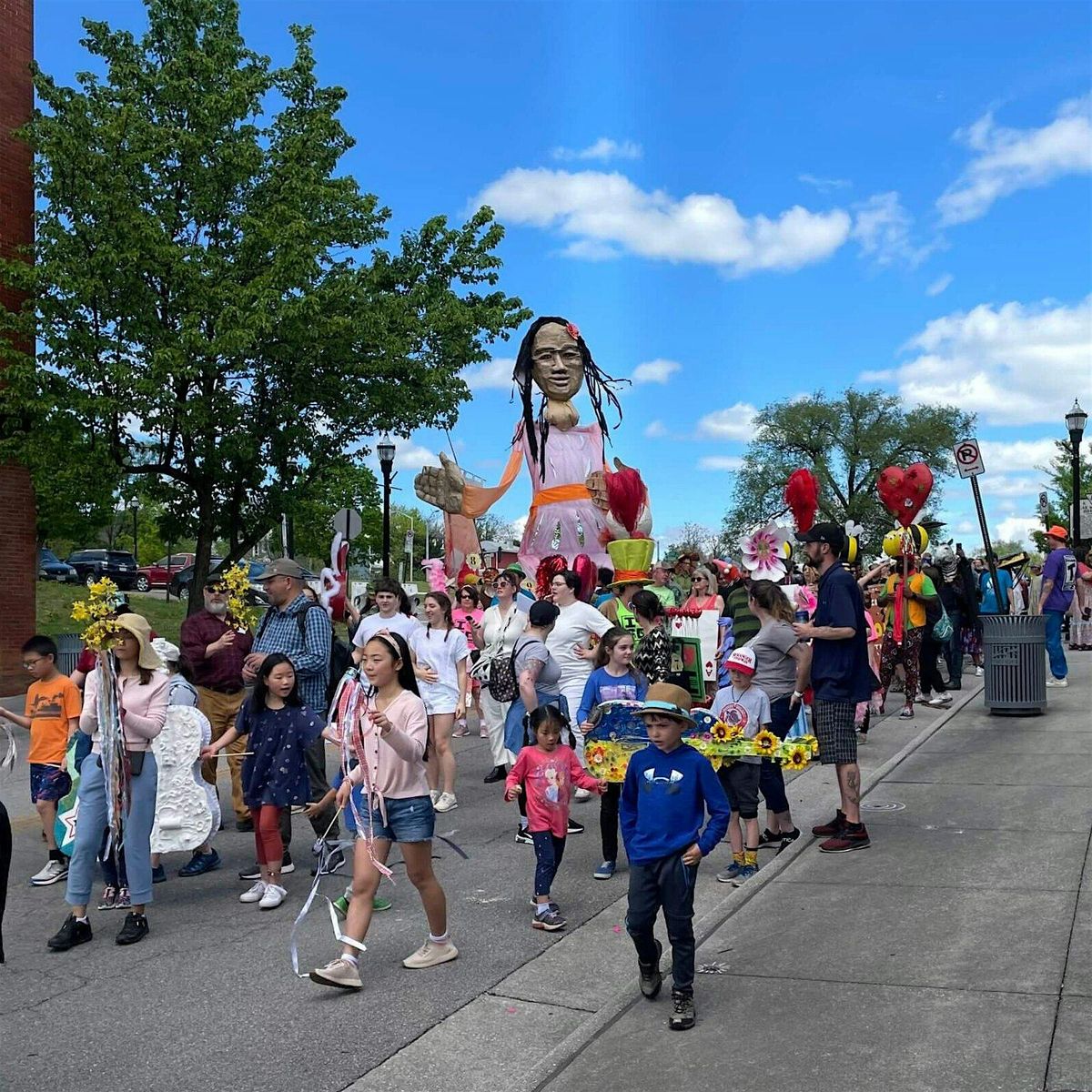 - Collaborate on giant puppets, costumes, banners, and more in preparation for the parade on Saturday, May 9!