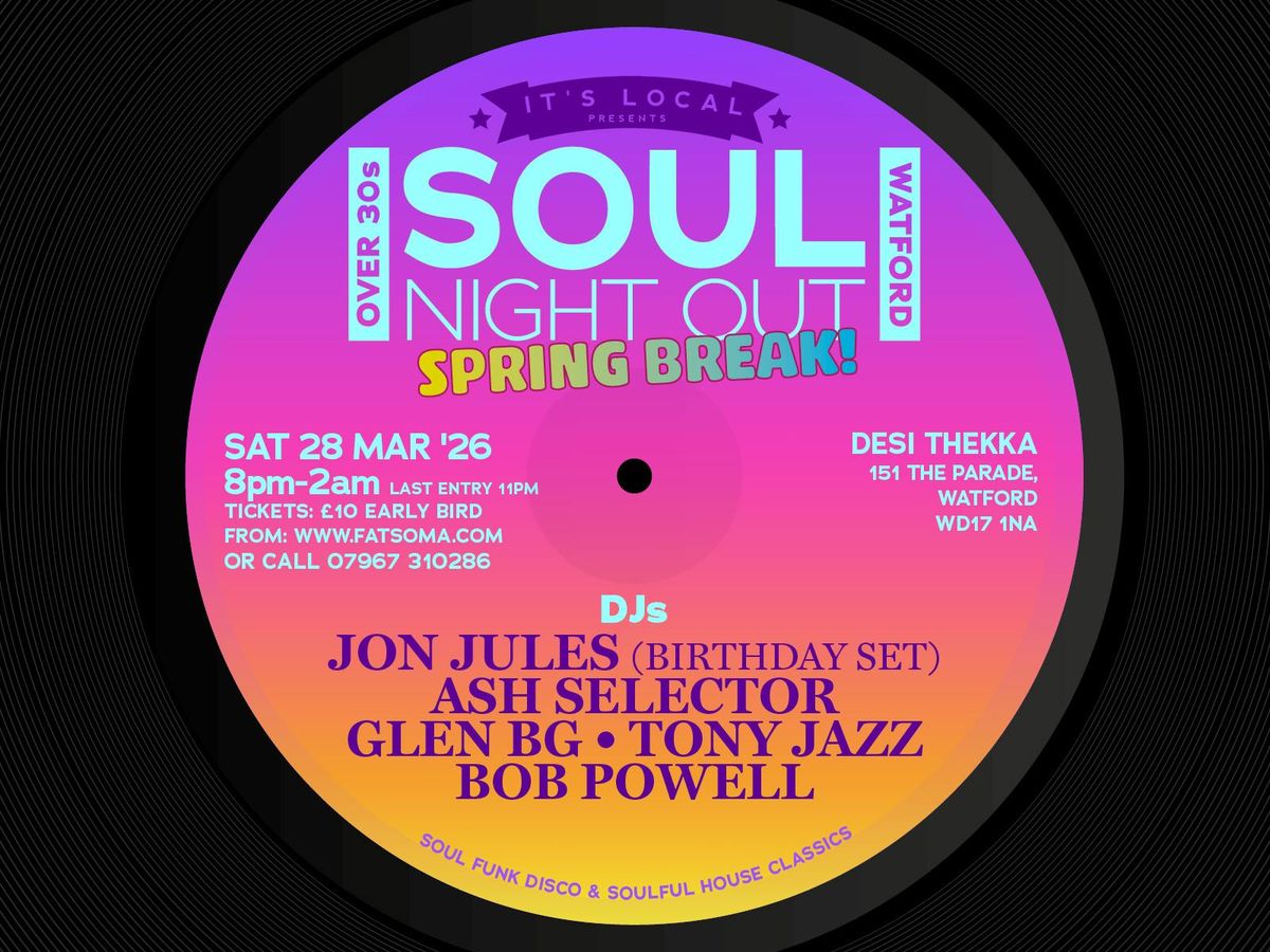 Firstly may we thank you all that attended our Sold-Out parties in 2025, we had a blast & created a great atmosphere with lots of new members.As we move into 2026 we're looking to grow together and make even more memoriesIt's Local Events are back with Watford Over 30's Soul Night Out "In the Heart of Watford"This all take place on Saturday 28th March 2026 at TheKka Gastro Bar (formerly Bar Bodega) at the top of the town