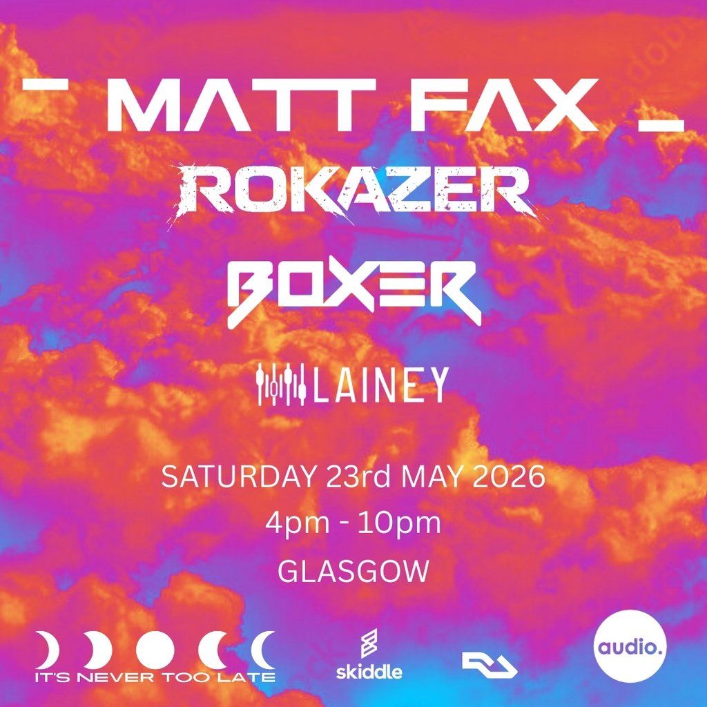 It's Never Too Late are proud to announce Matt Fax, Boxer and Rokazer in Glasgow on the 23rd May 2026.Music Genres : House, Trance, Techno, Deep House, Prog House