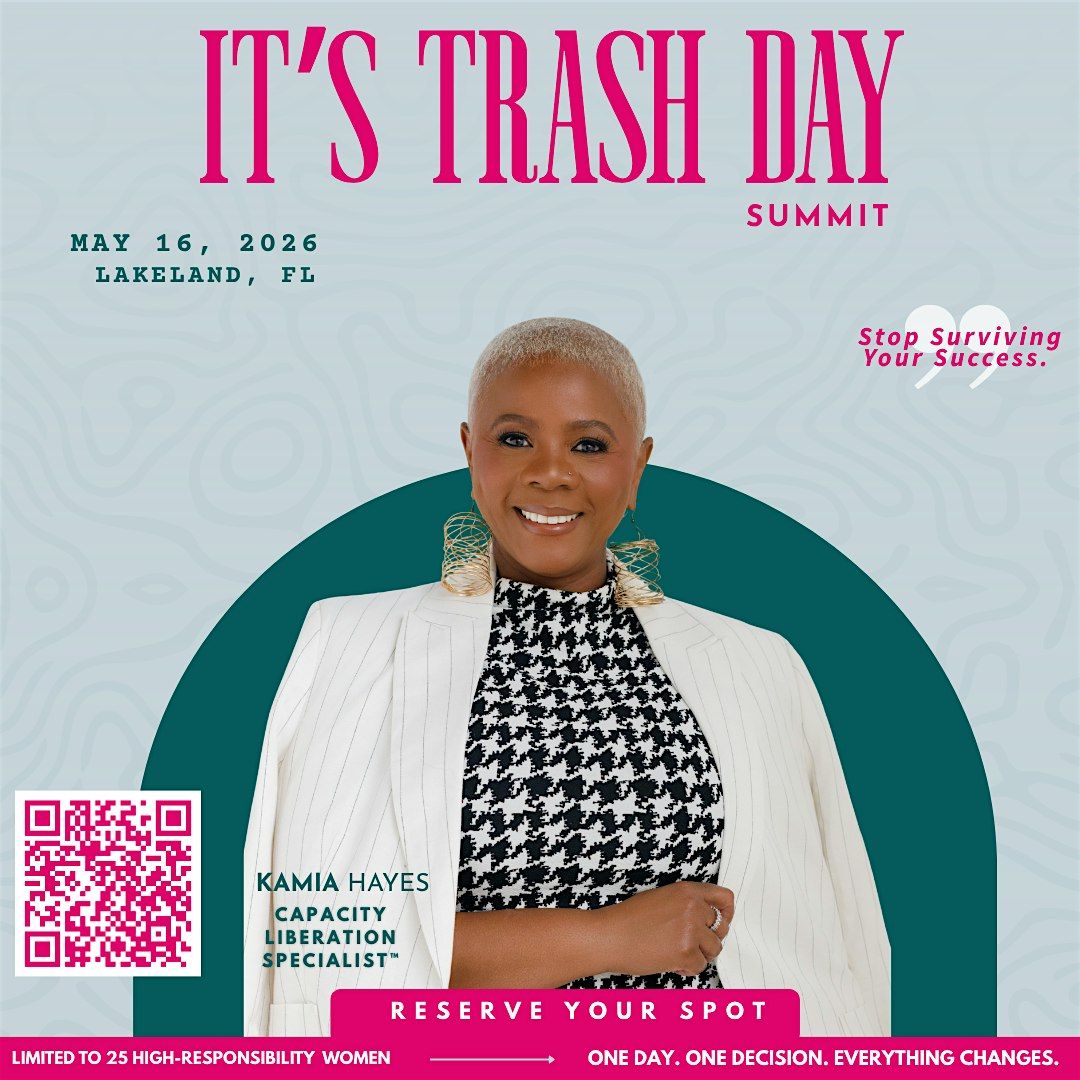 The It's Trash Day Summit is an intimate one day working experience for women who are done carrying everything for everyone. Your meal is included. Supplies provided. Limited to 20 guests.