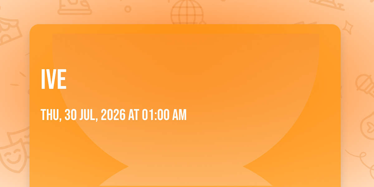 π Location: 30.2805, -97.7318π Step into a world of wonder at IVE, where extraordinary moments await! ποΈ Located at Moody Center ATX in dynamic Austin, TX, this event will become the talk of the town. π Join us on July 30th, 2026 at 01:00 AM for a celebration that defies the ordinary. β¨ This curated experience brings together the best of entertainment, culture, and community spirit. Every detail has been thoughtfully planned to ensure an unforgettable experience for all our guests. π― Take advantage of this opportunity to be part of something special. π Early registration is recommended as space is limited!