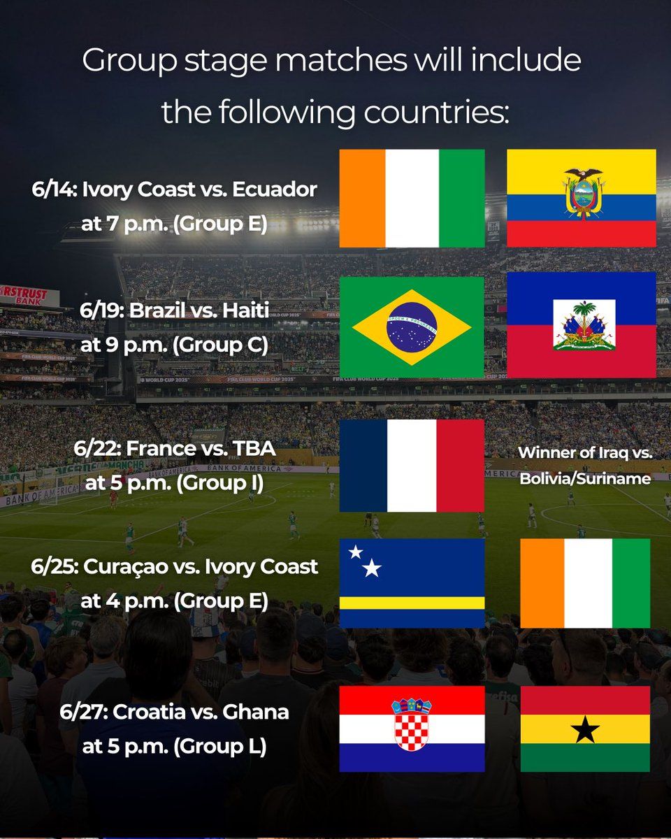 Football World Cup 2026 - Group Stage Ivory Coast vs Ecuador - Group Eβ¨ Enter a world of endless possibilities at Ivory Coast vs Ecuador - Group E - Football World Cup 2026 - Group Stage - Match 9 Tickets, where every moment tells a story! ποΈ The stunning Lincoln Financial Field in vibrant Philadelphia, PA transforms into a realm of wonder on June 14th, 2026 at 07:00 PM. π They have crafted an experience that goes beyond the ordinary, combining elements of surprise, delight, and pure entertainment. Every detail has been thoughtfully considered to ensure your journey with us is nothing short of extraordinary. π― Join fellow adventure seekers and memory makers in this celebration of imagination and innovation. π« Get your tickets at 473.77 EUR. π Reserve your spot today and be part of something truly special!