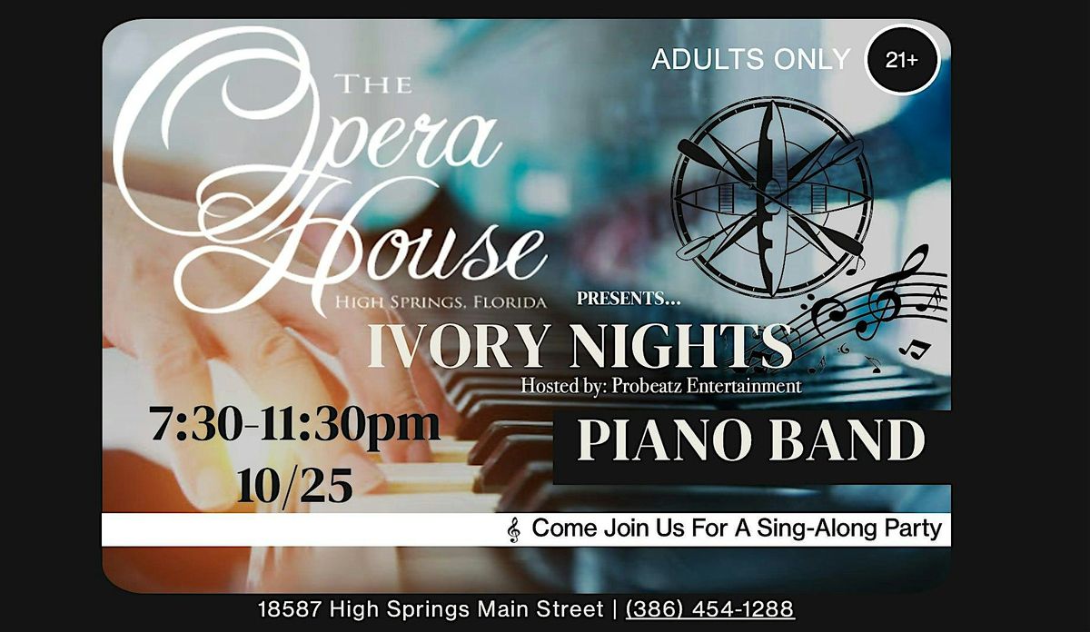 Back by popular demand, we’ve added another opportunity for guests from High Springs, Alachua, Gainesville, and the surrounding areas to enjoy an interactive evening of music, singing, and dancing in our historic Opera House.