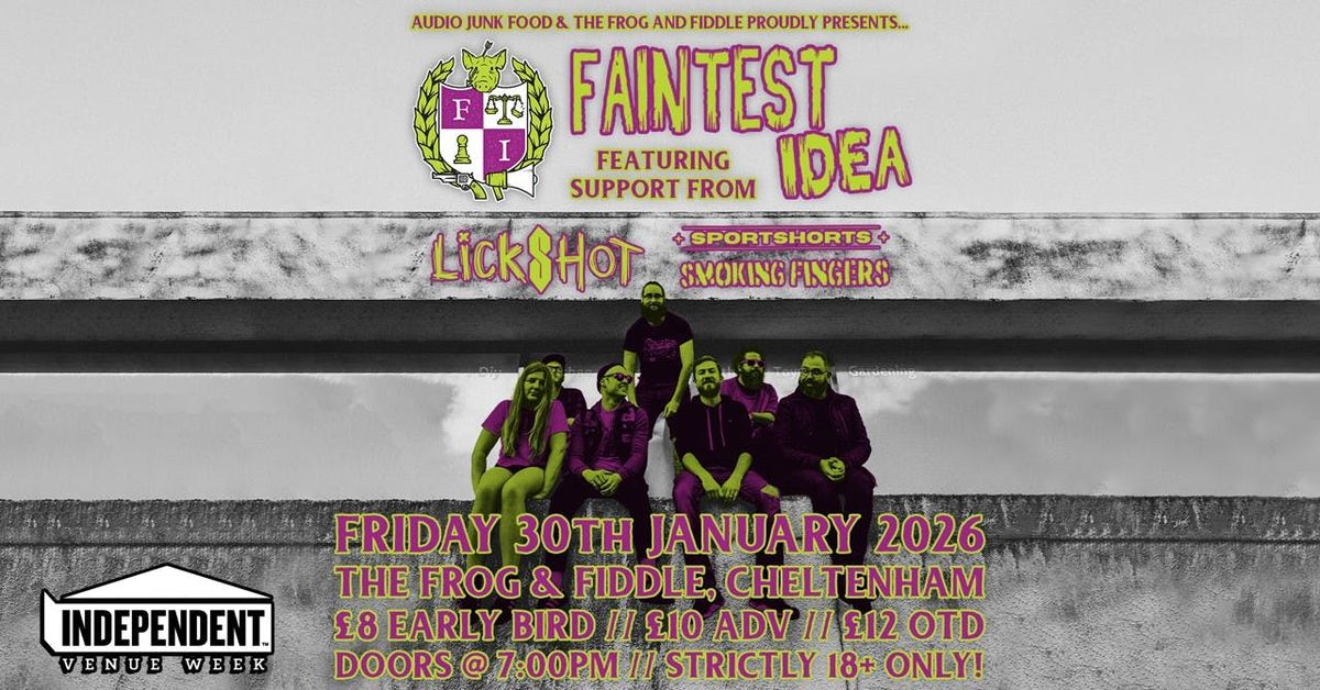 This year we are teaming up with our pals at the Frog & Fiddle once again to bring you a cracking weekend of live music for Independent Venue Week!Kicking off the weekend with Norfolk's finest 'Faintest Idea'! Featuring support from Local legends 'Lickshot', 'Sportshorts' & a Frog and Fiddle debut for the Isle of Man's 'Smoking Fingers'!