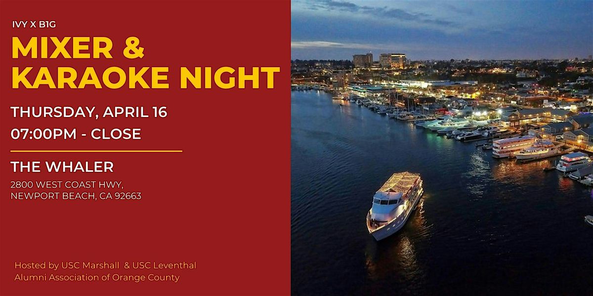 The popular Ivy x B1G mixer series is back in OC! ☀️ Join us at the Whaler in Newport Beach for a night of networking and karaoke! 🎤 These mixers regularly hit 200+ RSVPs, so register now to make sure you get a spot! Be sure to show your Trojan pride - USC spirit wear encouraged! Singing is optional, but fun is guaranteed!