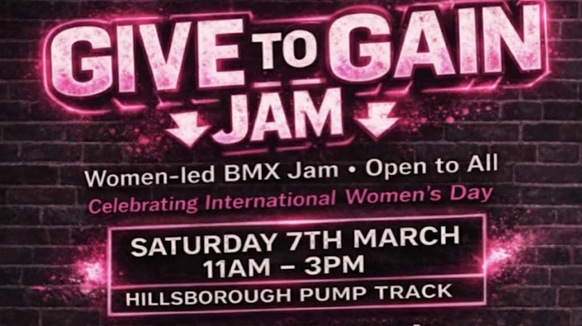 Give to Gain Jam - Presented by our friends Steel n Spice supported by us (Access Sport) and Hillsborough Pump Track. Celebrating International Womens Day 2026. Fun filled day 11am -3pm with cycling and BMX fun, music, meet local BMX clubs, stalls and much more.