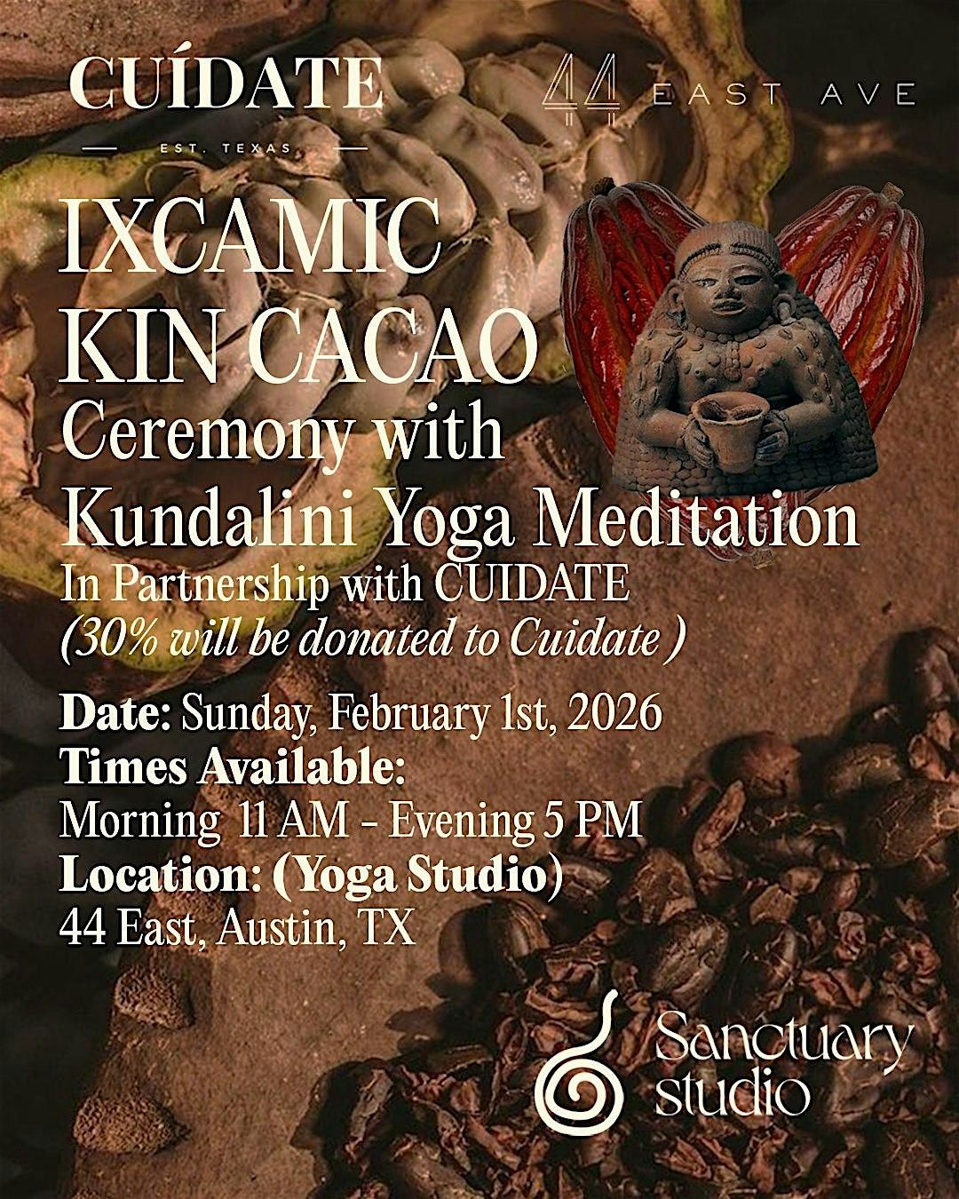 Join us for an Ixcamic Kin Cacao Ceremony, a 45-minute sacred community gathering rooted in Mayan ancestral wisdom, intentional presence, and collective care.