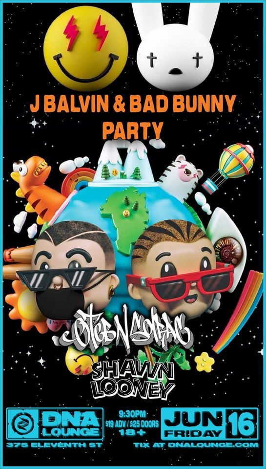 Our continuing incredible J Balvin vs. Bad Bunny party! Brought to you by Bay Area DJs OtebNSolrac, hyphy meets house meets cumbia on the dance floor. Oteb and Solrac are DJs and twins, so you know their b2b is going telepathically awesome and will be full of Latin dance favorites that affirm his love of life and keep the bodies moving