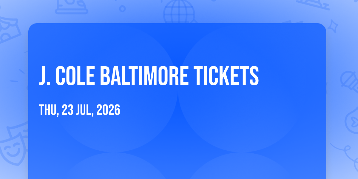 J. Cole at CFG Bank Arena✨ Discover the extraordinary at J. Cole Baltimore Tickets, where magic meets reality in ways you've never imagined! 🏛️ Set in CFG Bank Arena nestled in bustling Baltimore, MD, this event promises to be a landmark occasion. 📅 Taking place on July 23rd, 2026 at 08:00 PM, it's going to create an atmosphere where every moment becomes a cherished memory. 🌟 Immerse yourself in an experience crafted with attention to every detail, designed to surprise and delight at every turn. They have worked tirelessly to ensure this event exceeds all expectations, bringing together elements of entertainment, innovation, and pure joy. ✨ With tickets available at 194.67 EUR, your journey awaits. 🎊 Don't miss your chance to be part of this remarkable journey!