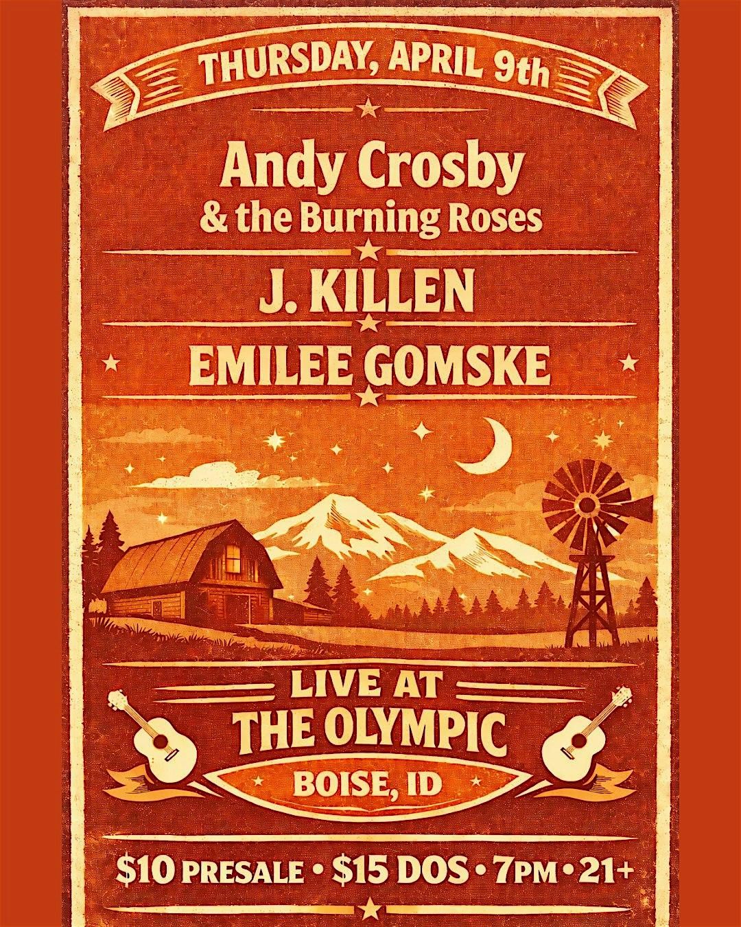 J. Killen w/ guests Andy Crosby & the Burning Roses and Emilee Gomske