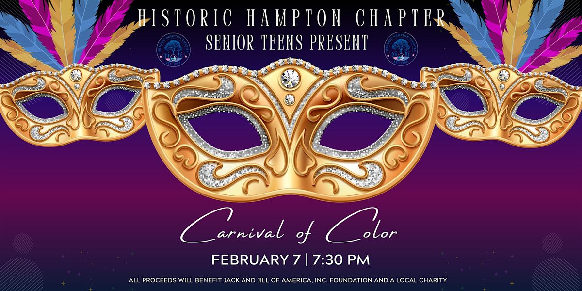 Get ready for one of the most aniticipated teen events of the year, Carnival of Color! Carnival of Color presented by the Senior Teens of the Historic Hampton Chapter of Jack and Jill of America, Inc. is a Mardi Gras inspired teen party designed to bring bold colors, nonstop music, and unforgettable vibes all under one roof. Designed especially for teens, this event brings the energy, creativity, and excitement everyone looks forward to.