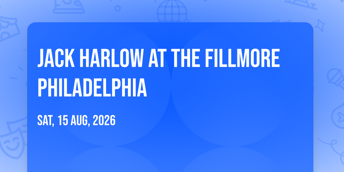 π Step into a world of wonder at Jack Harlow at The Fillmore Philadelphia, where extraordinary moments await! ποΈ Located at The Fillmore Philadelphia in dynamic Philadelphia, PA, this event will become the talk of the town. π Join us on August 15th, 2026 at 07:30 PM for a celebration that defies the ordinary. β¨ This curated experience brings together the best of entertainment, culture, and community spirit. Every detail has been thoughtfully planned to ensure an unforgettable experience for all our guests. π― Take advantage of this opportunity to be part of something special. π Early registration is recommended as space is limited!