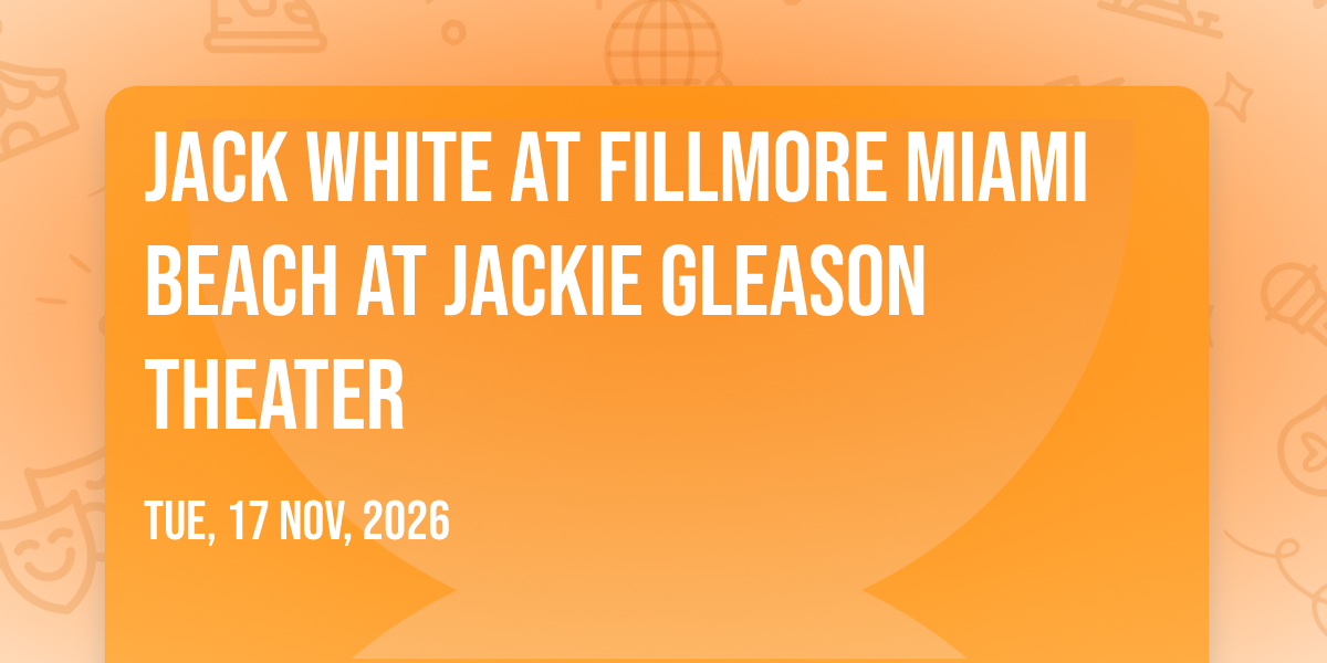 π Welcome to Jack White at Fillmore Miami Beach at Jackie Gleason Theater, where the impossible becomes possible and dreams take flight! ποΈ Join us at Fillmore Miami Beach at Jackie Gleason Theater in the heart of Miami Beach, FL for an event that will redefine your expectations. π On November 17th, 2026 at 08:00 PM, witness the transformation of space and time into something truly magical. β¨ It's a curated experience combining the best of innovation, entertainment, and community spirit, creating moments that will be remembered for years to come. Whether you're a first-time visitor or a seasoned enthusiast, prepare to be amazed. π Book now to ensure your place in this unforgettable experience!