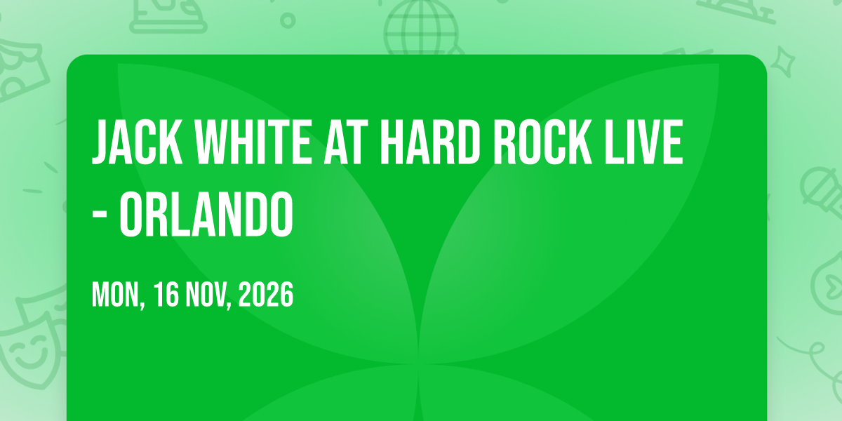 π Be part of history at Jack White at Hard Rock Live - Orlando, an extraordinary gathering that will captivate your imagination! ποΈ The prestigious Hard Rock Live - Orlando in Orlando, FL sets the stage for an unforgettable experience on November 16th, 2026 at 08:00 PM. β¨ They are bringing together the finest elements of entertainment and innovation to create moments that will take your breath away. From the moment you arrive, you'll be immersed in an atmosphere of wonder and excitement. π― This carefully planned event ensures every guest experiences something truly special. π Early booking is recommended for this must-attend event of the season!