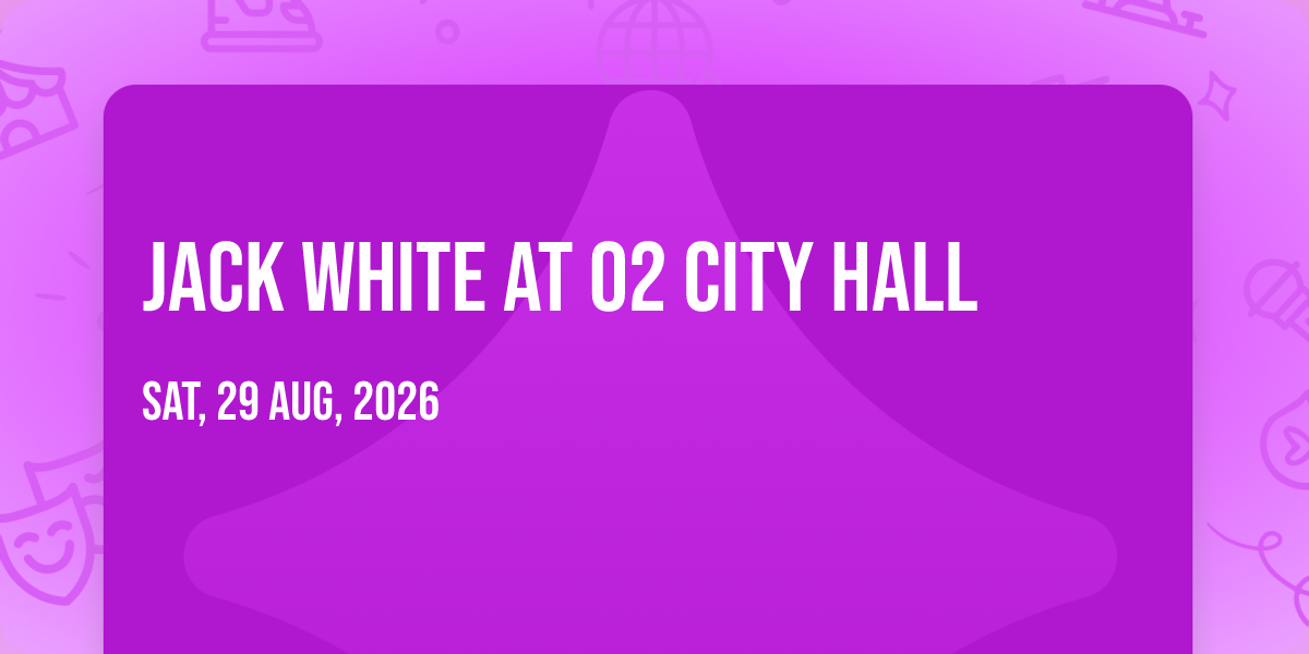 ✨ Experience the magic of Jack White at O2 City Hall, where moments become memories that last a lifetime! 🏛️ The iconic O2 City Hall in Newcastle Upon Tyne, EN sets the perfect stage for an unforgettable celebration on August 29th, 2026 at 07:00 PM. 🌟 It's been a curated experience that brings together the best of entertainment and innovation, creating an atmosphere of wonder and excitement. From the moment you arrive, you'll be immersed in a world where the ordinary transforms into the extraordinary. 🎊 Book early to secure your place in what promises to be an event that will be talked about for years to come!