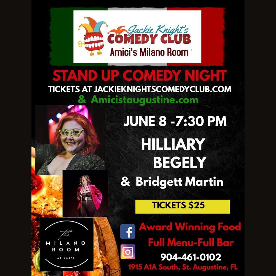 Amici's Milano Room is proud to host Jackie Knight's Comedy Club on Thursday June 8, 2023!Featuring Hilliary Begely & Bridgett Martin!