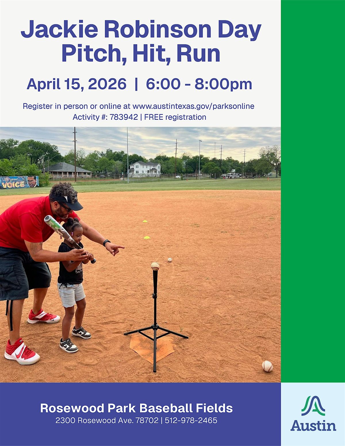 Join us for the Jackie Robinson Pitch, Hit & Run program on April 15, 6 PM – 8 PM!