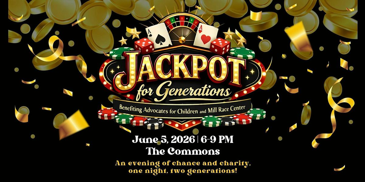 Join us for Jackpot for Generations: An Evening of Chance and Charity, a 21+ casino-style fundraiser benefiting Advocates for Children and Mill Race Center.
