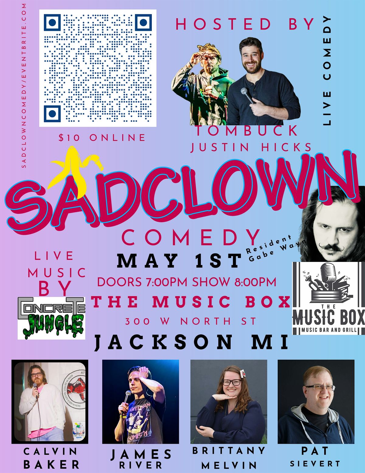 Get ready to laugh your heart out at the SadClownComedy Show happening right here in Jackson, MI! This in-person event is packed with hilarious moments and a vibe you just can't get online. Come join the fun, enjoy the live energy, and share some good times with fellow comedy fans. Don't miss out on a night full of laughs and surprises!