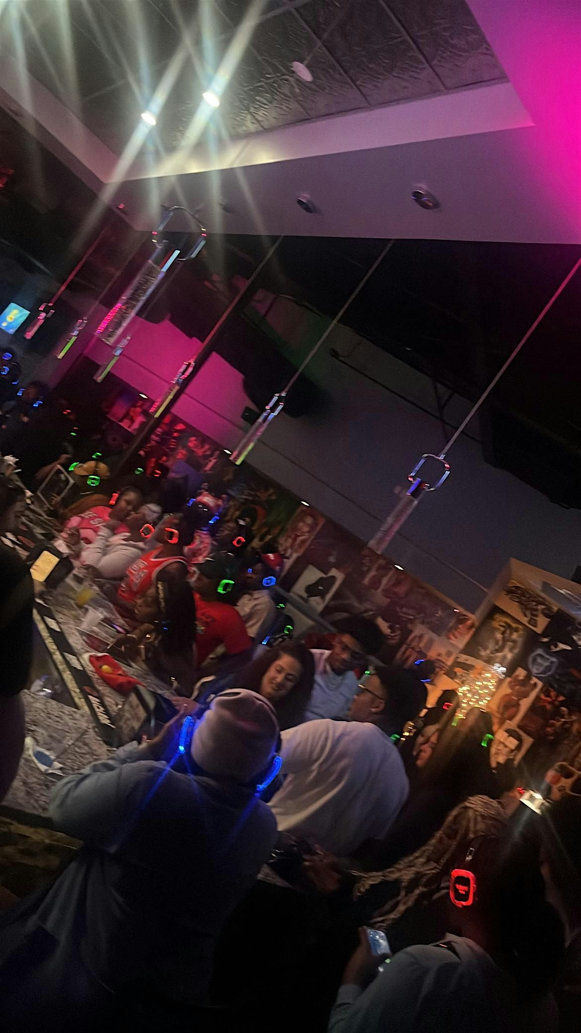 When you arrive you’ll receive a pair of wireless headphones. You can adjust the volume and choose between up to three DJ’s with a flip of a switch. Each headset has a color (BLUE, RED, GREEN) LED that shows what channel you are listening to, so you can dance along with those listening to the same DJ. It’s super social; just lower the volume or take the headphones off to talk to that girl or guy. There’s no loud music that you have to talk over. Plus, there’s no ringing in your ears when you leave!