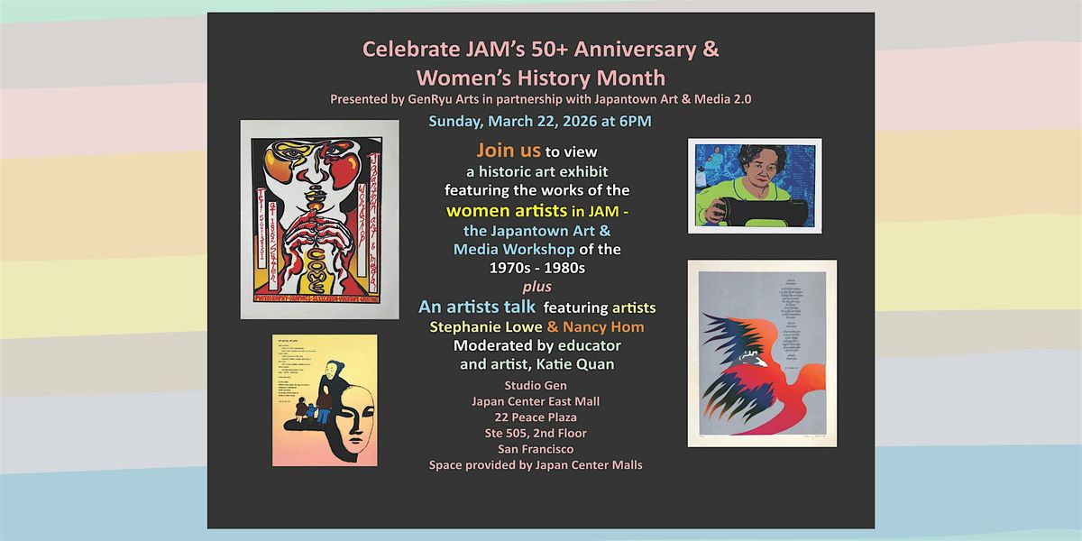Join us to view a historic art exhibit featuring the works of the women artists in JAM- the Japantown Art & Media Workshop of the 1970s-1980s. Plus an Artist Talk featuring artists Stephanie Lowe & Nancy Hom, moderated by educator and artists, Katie Quan.