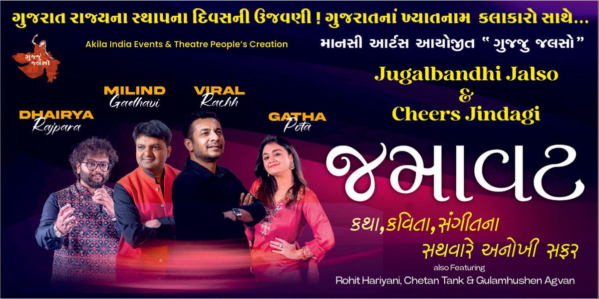 Presented by Mansi Arts as part of the Gujarat State Foundation Day celebrations, this special showcase is a creative collaboration by Akila India Events & Theatre People, bringing together some of the most celebrated performers on one stage.