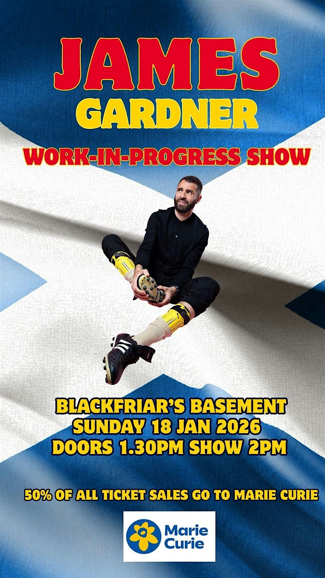 Start the new year with James Gardner as he works up new material for his upcoming "Stand Up For Scottish Football" show along with anything else that pops into his head. Suggest topics, ask questions or make requests, anything goes. 50% of ticket sales will go to Marie Curie, the charity James will be running London Marathon 2026 for.