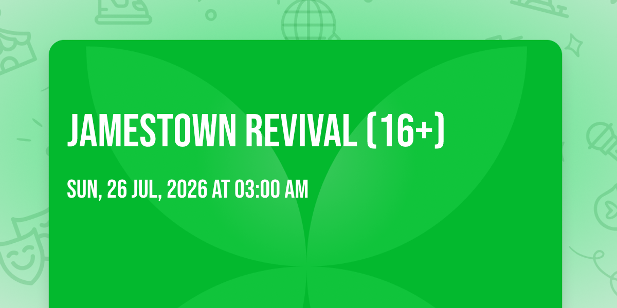 π Location: 39.6577, -104.988π Welcome to Jamestown Revival (16+), where the impossible becomes possible and dreams take flight! ποΈ Join us at Gothic Theatre in the heart of Englewood, CO for an event that will redefine your expectations. π On July 26th, 2026 at 03:00 AM, witness the transformation of space and time into something truly magical. β¨ It's a curated experience combining the best of innovation, entertainment, and community spirit, creating moments that will be remembered for years to come. Whether you're a first-time visitor or a seasoned enthusiast, prepare to be amazed. π Book now to ensure your place in this unforgettable experience!