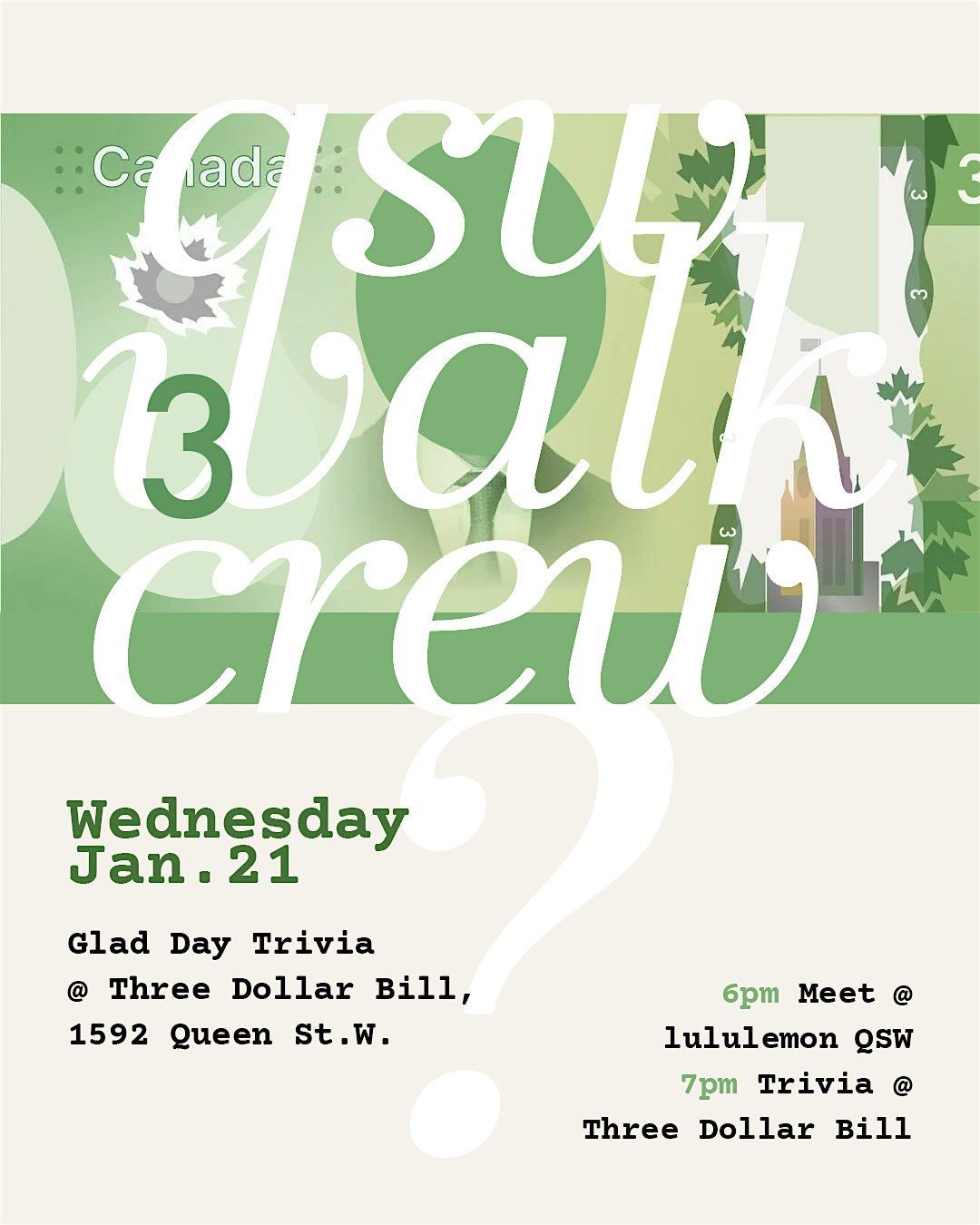 Jan.21 QSW Walk Crew to Glad Day Trivia at Three Dollar Bill