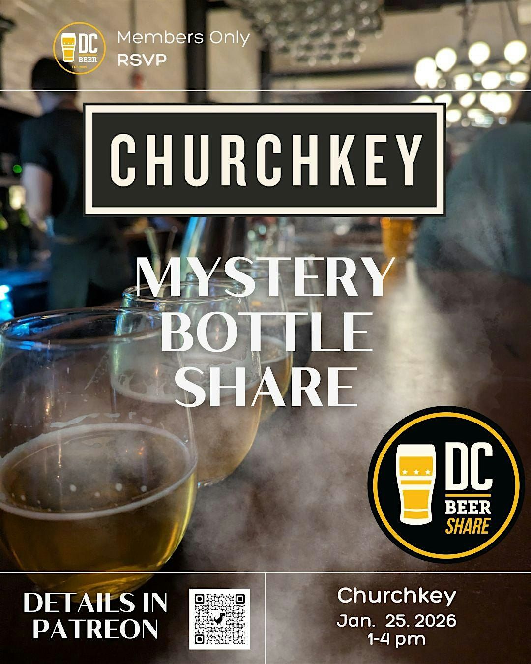 Get ready for a fun, in-person gathering with fellow beer lovers! Join us at Churchkey for a special MYSTERY BOTTLE January Beer Share, an exclusive event just for members. Share your favorite brews, discover new ones, and enjoy some great conversations in a laid-back atmosphere. Whether you're a craft beer newbie or a seasoned pro, this is the perfect chance to connect and celebrate all things beer. Cheers to good times and great company!