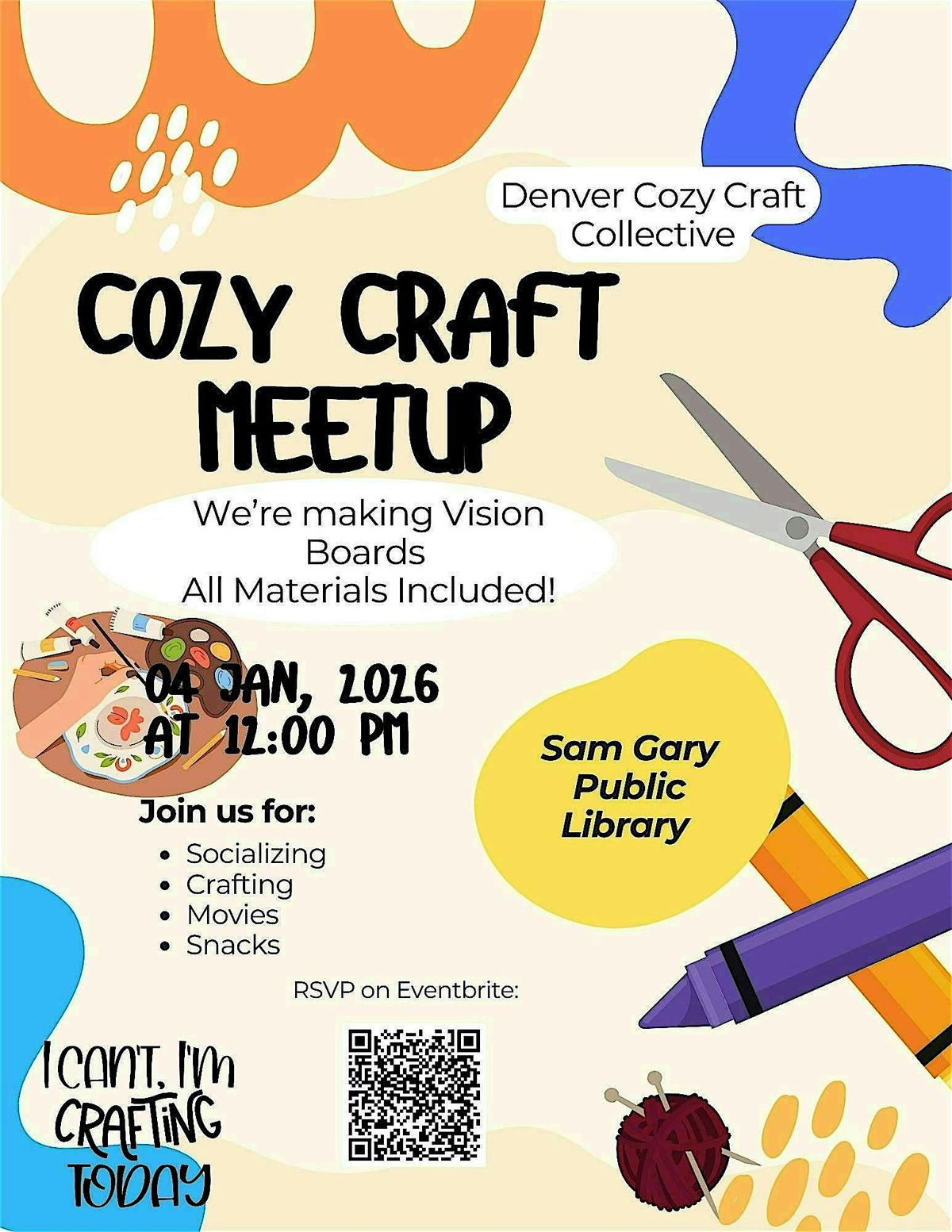 Hey Denver Cozy crafters! Join us in person for the January Cozy Craft Meetup #1. This meetup will be a celebtration, bringing in the new year, and getting our mind set for 2026. We will be making vision boards (Physical or virtual) but feel free to work on whatever project you want!