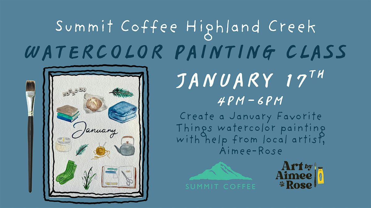 January Favorite Things Watercolor Class at Summit Coffee Highland Creek
