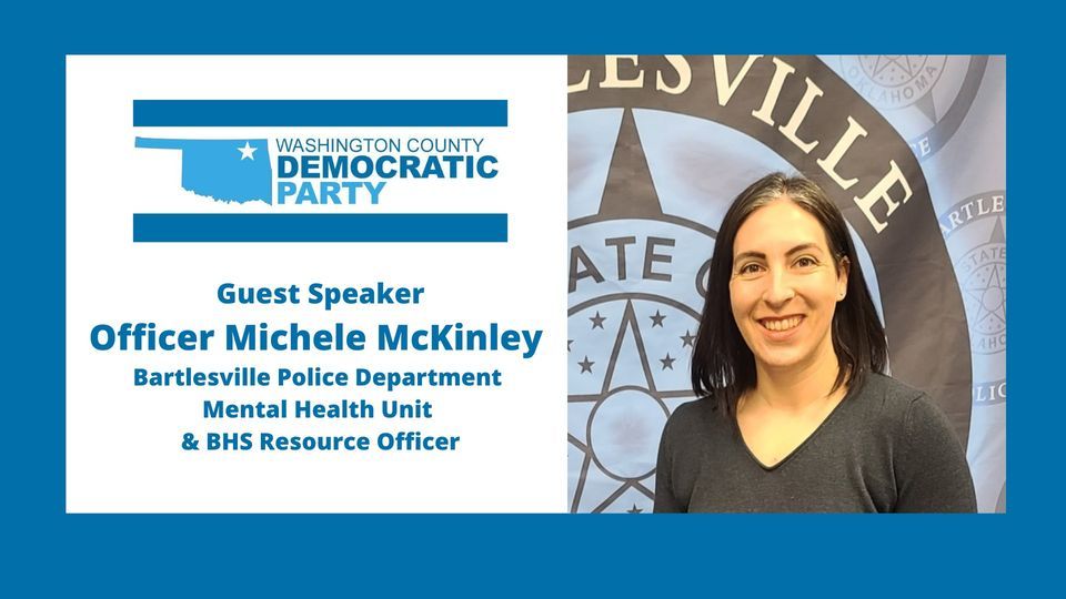 Come join the Washington County Democrats as we gather in-person at Crossing 2nd. Our guest speaker will be Officer Michele McKinley who will present about her experience with the Bartlesville Police Department Mental Health Unit and as a resource officer at the high school. Michele has served in Califorina and most recently in Enid before joining the Bartlesville Police Department.