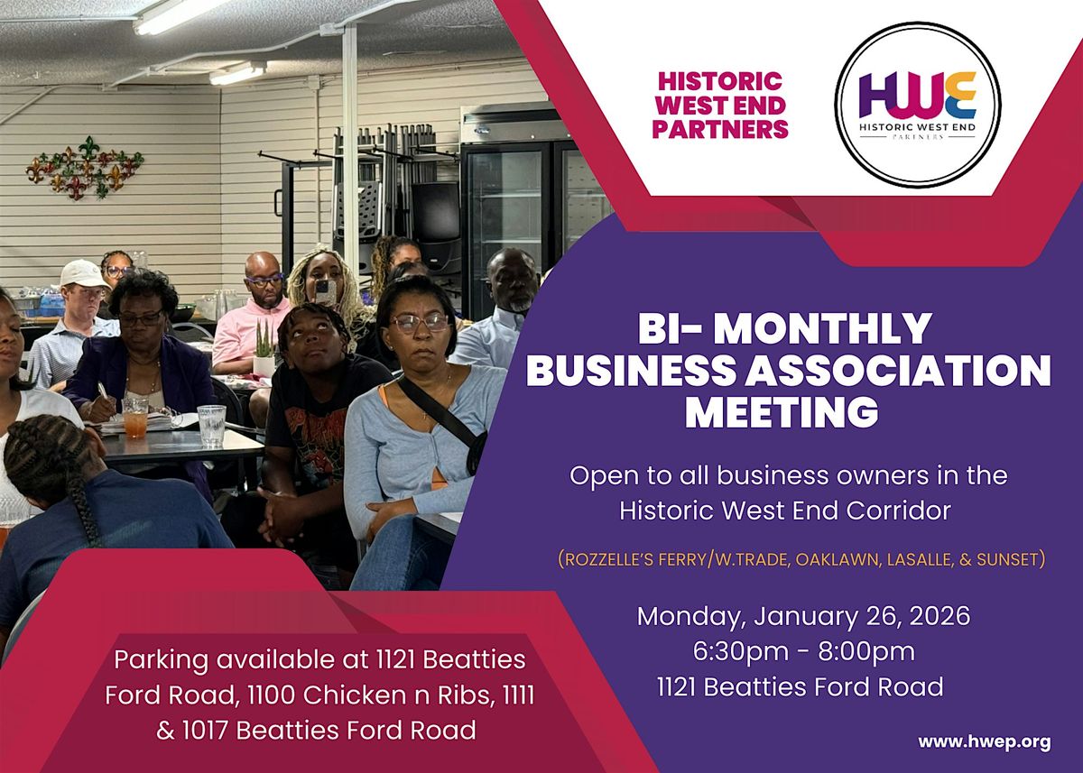 If you are a business owner in the Rozzelle's Ferry/West Trade, Oaklawn, LaSalle, or Sunset area, you should be in attendance for the Historic West End Business Association Meeting!