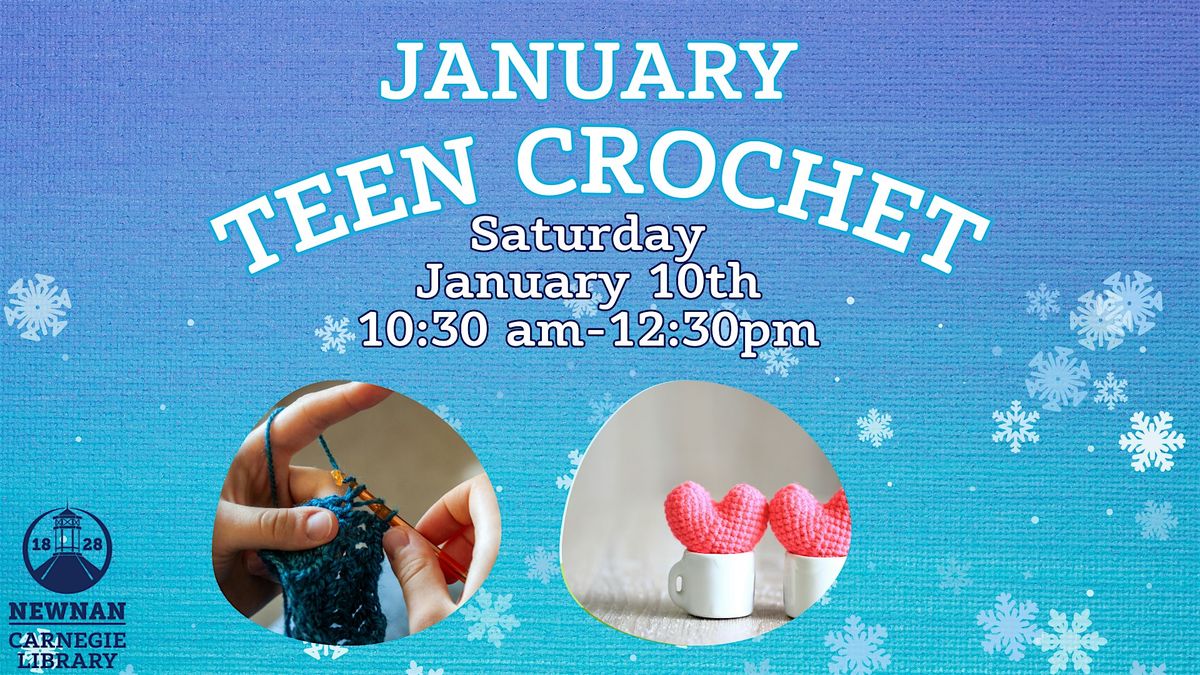 Come join us for Teen Crochet! We are meeting in the teen area and will be sharing skills abd patterns. An instructor will be on hand for new crocheters, but all skill levels are welcome! Bring a skein of red heart yarn and a size h crochet hook, or any project you are currnetly working on. Ages 11-18.