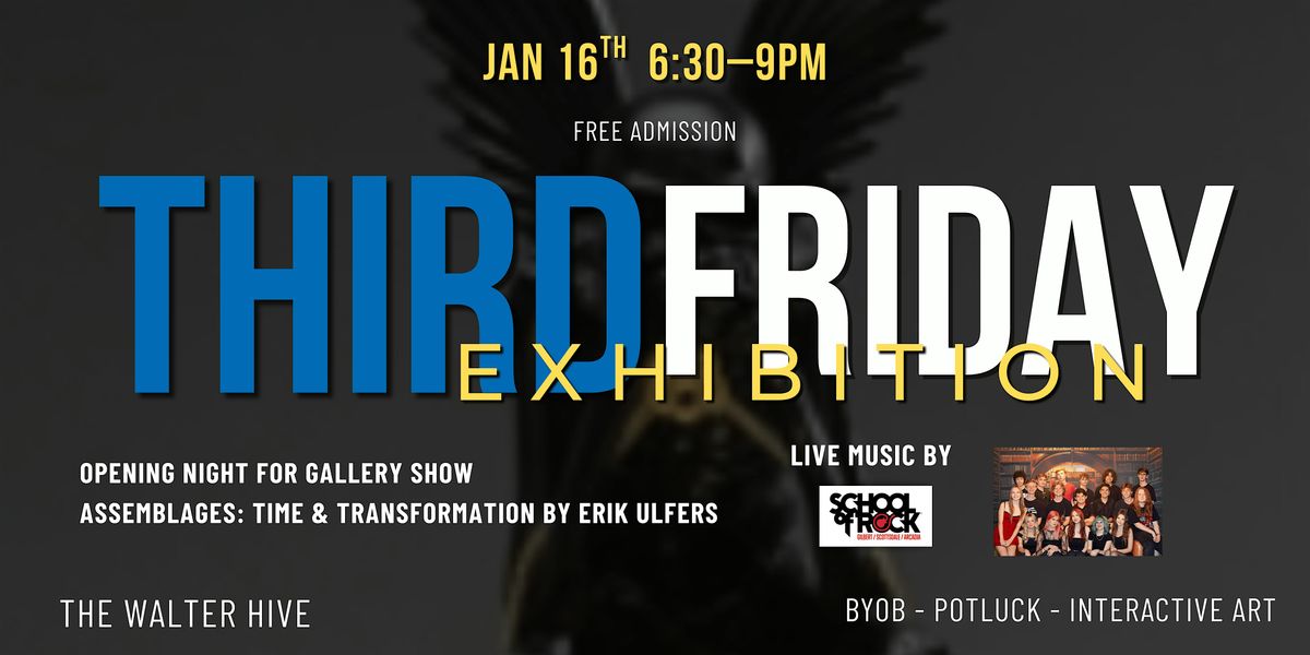 Come join us every Third Friday of the month! This is a FREE community event and does not require a ticket, but we are a 501(c)(3) nonprofit and gladly accept donations. Here you'll find fine art, live music, art stations, a potluck, and good vibes all around!