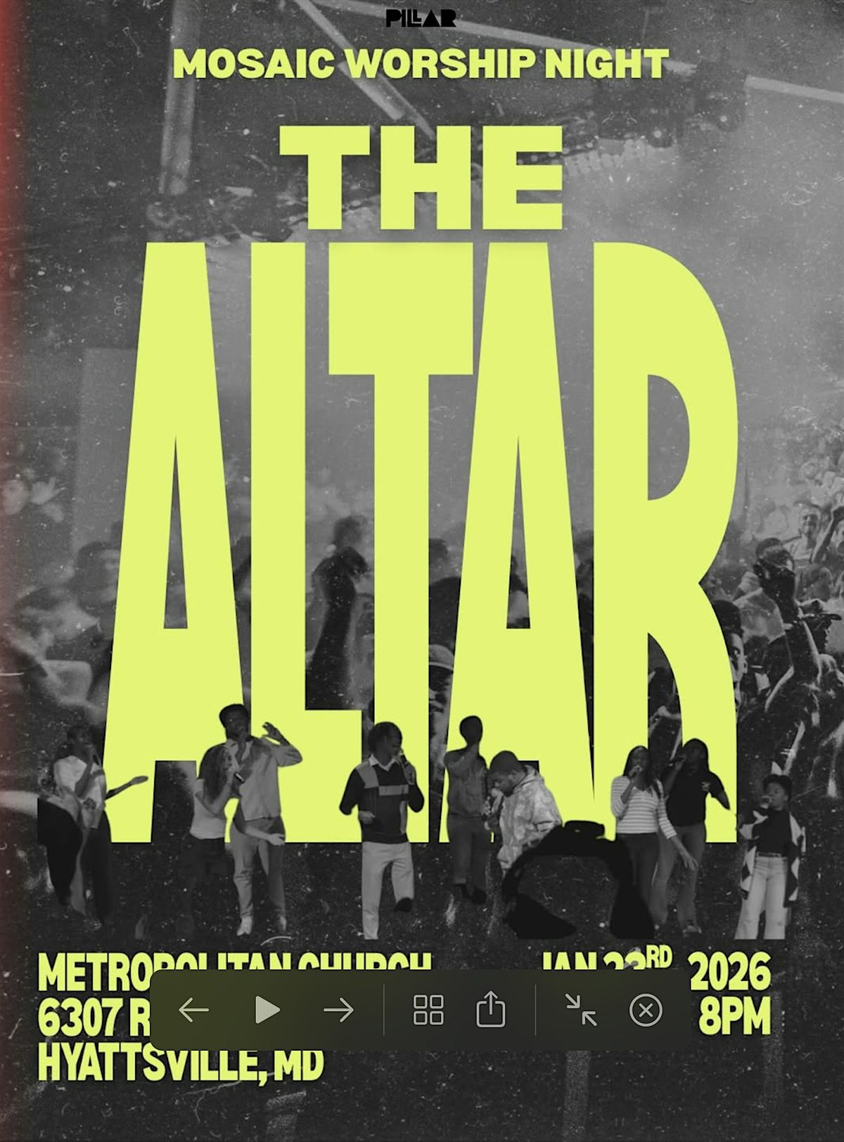 Come join us on Friday night, January 23rd, 2026 at 8:00 PM at Metropolitan Church for a night filled with music, prayer, and community. This experience is all about coming together to worship and celebrate our faith in a vibrant and inclusive setting.