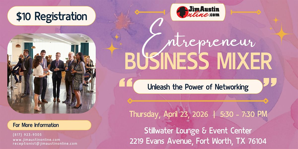 Welcome to the Entrepreneur Business Mixer! Join us for an evening of networking, collaboration, and fun at the Stillwater Lounge & Event Center. Connect with fellow entrepreneurs, share ideas, and build valuable relationships. Whether you're a seasoned business owner or just starting, this event is the perfect opportunity to expand your network and grow your business. Don't miss out on this fantastic chance to mingle with like-minded individuals and take your business to the next level.