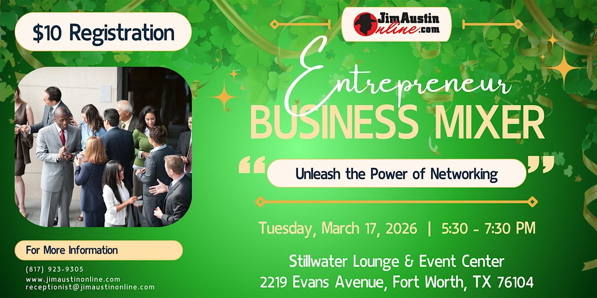 Welcome to the Entrepreneur Business Mixer! Join us for an evening of networking, collaboration, and fun at the Stillwater Lounge & Event Center. Connect with fellow entrepreneurs, share ideas, and build valuable relationships. Whether you're a seasoned business owner or just starting, this event is the perfect opportunity to expand your network and grow your business. Don't miss out on this fantastic chance to mingle with like-minded individuals and take your business to the next level.