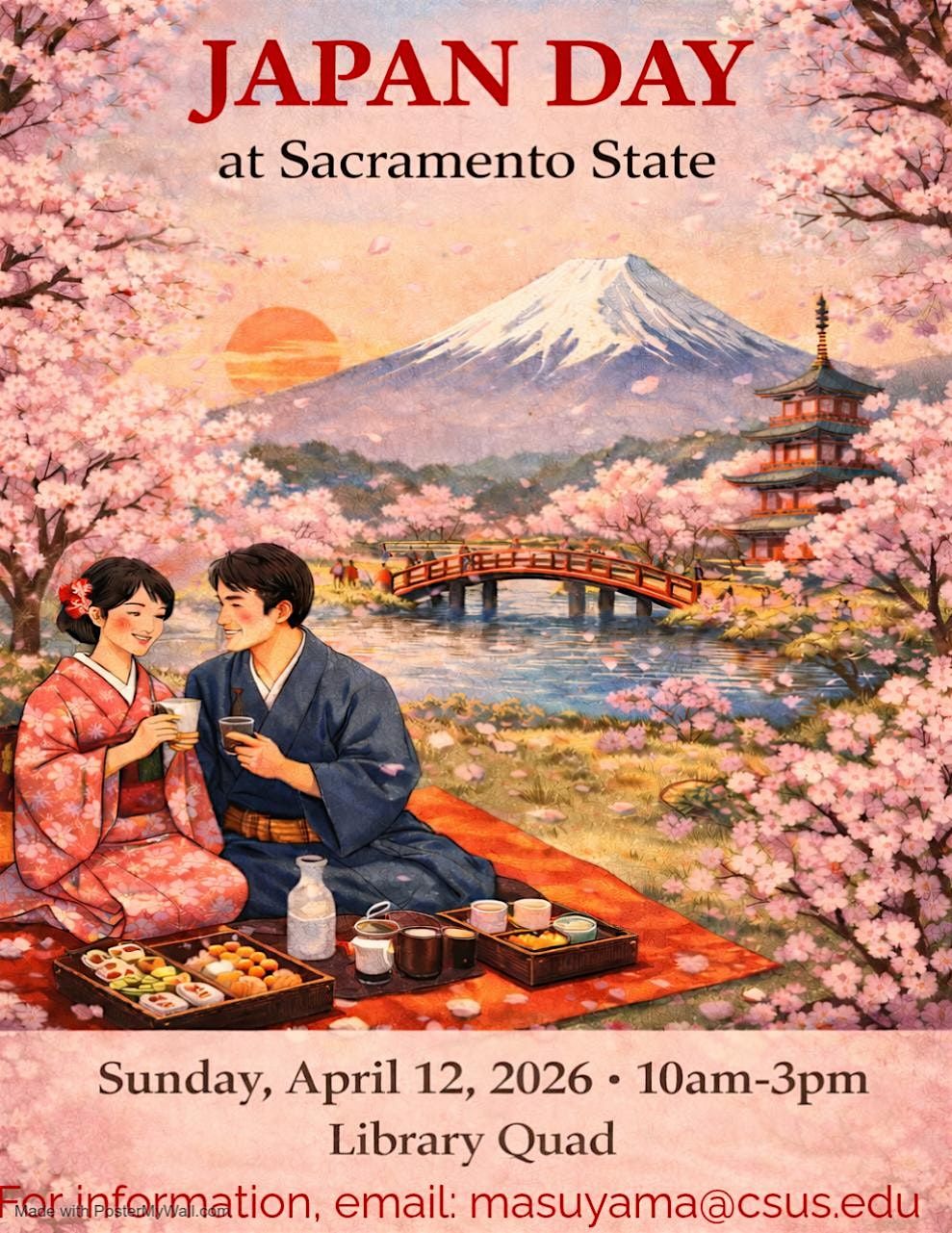 Join us for the 19th annual Japan Day celebration, sponsored by the Japan Club at Sac State, in conjunction with ASI and the College of Arts and Letters. Live martial arts demonstrations, music performances, and more. This year's theme is "Hanami," or Cherry Blossom Viewing. Japan Day is free, and a family friendly event.